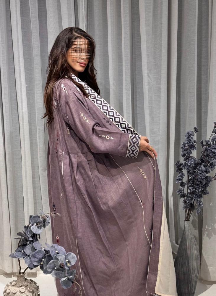 يكتمل جمال العباءة بتطريز يغطي كامل العباءة وكسرات جانبية دقيقة تضفي فخامة وتفاصيل راقية لكل إطلالة.